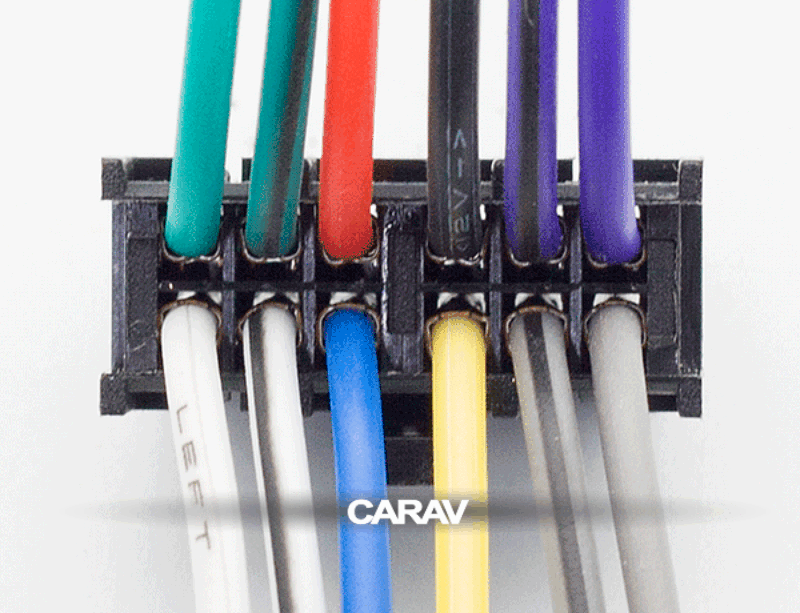 12-pin conector (hembra) <---> CARAV <---> Alimentación y Altavoces