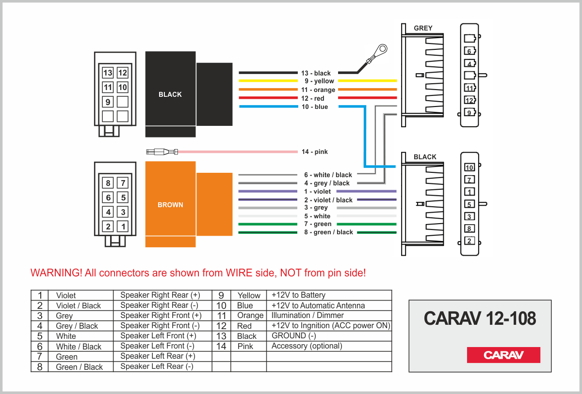 ISO (hembra) <---> CARAV <---> conector OEM (macho)